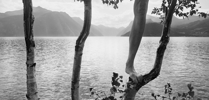 Art being an imitation of nature, Minkkinen initiates a true mise en abyme: The photographer literally merges, lurks, vanishes even into the heart of a nature/artist, accounting for their respective talent. The artist is thereby also nature’s work, which he mirrors to exist inside it. A brilliant perspective, Minkkinen’s scenography sets him inside his own work, creator and creature at the same time.