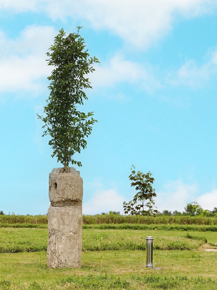 In this project, Mayer draws on the ideas of Swiss landscape architect Dieter Kienast (1945–98), who designed the Austrian Sculpture Park for the 2000 International Garden Exhibition. For Kienast, gardens and parks were “poetic places of our past, present, and future,” places not only of memory but also of new imagination. Mayer’s project can be seen as a continuation of these ideas: it consciously embraces time as a material and medium and intertwines distinct temporal dimensions–geological deep time, the biological time of life, and the projected time of cultural-