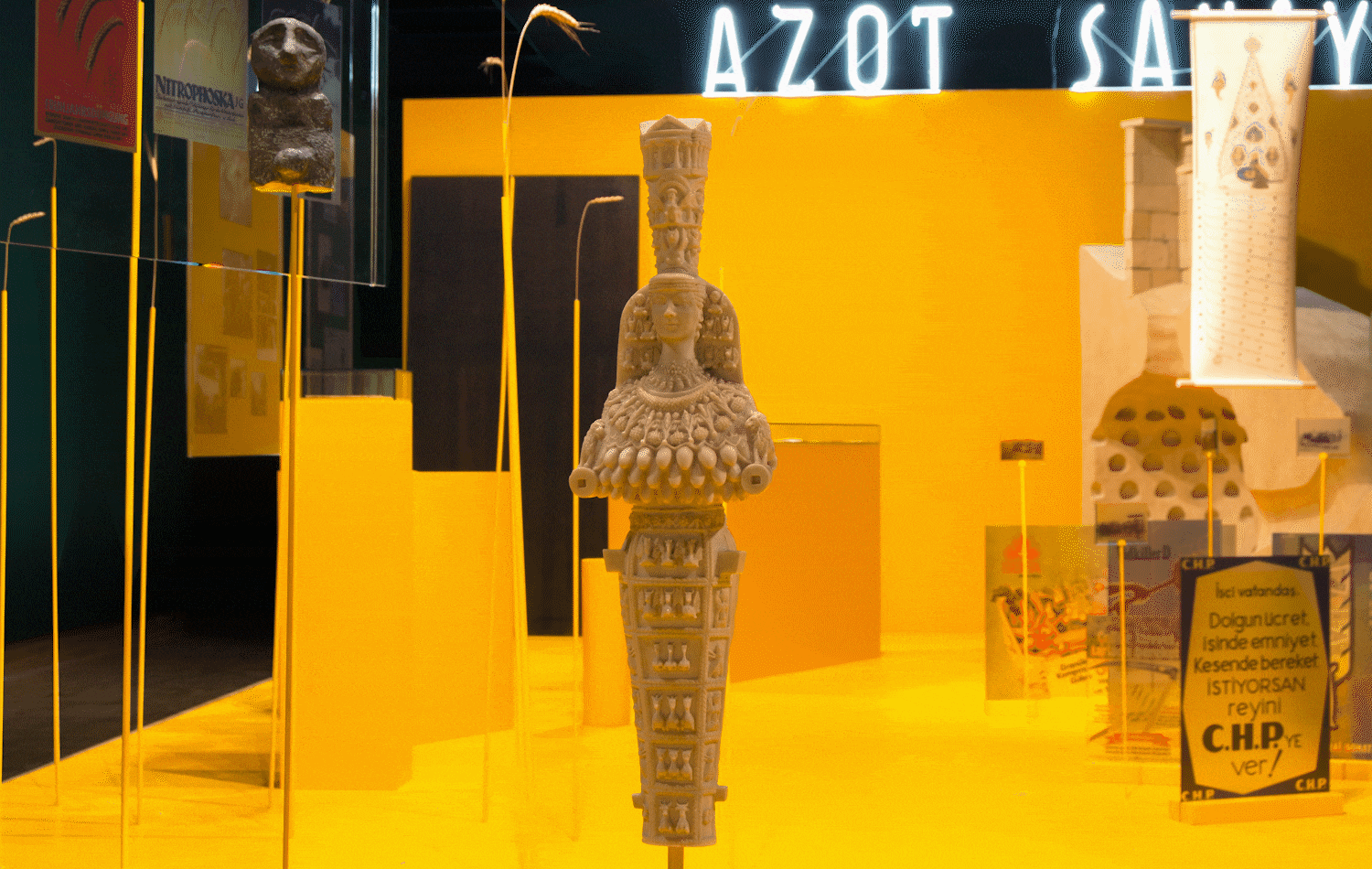 Through selected cases, CLIMAVORE: Seasons Made to Drift studies and demonstrates instances that help identify new seasons in action. The exhibition starts with one of five commissioned works, Weathered (2021) on the ground floor of SALT Beyoğlu, where the Forum becomes a “prosthetic” forest of material records of historic droughts and famines in Anatolia. Ranging from newspaper cuttings and poems to fossil leaves, tree rings, and timber fragments, the artefacts refer to climate information from the times when meteorological data was not yet systematically collected. Unicum (2021) delves into the phenomenon of the Mediterraneanization of the Black Sea, where changes in water temperature and salinity cause migration of species and the emergence of new habitats, now with increased speed. The Lasting Pond (2021) digs into the shrinking of wetlands on the periphery of Istanbul by tracking water buffalos along their wallowing routes. Traces of Escapees (2021) dives into the sea to diagnose the pollution caused by fish farms and the subsequent genetic erosion of local types. Exhausted (2021) undoes the tales of soil and human fertility from the Neolithic age in the so-