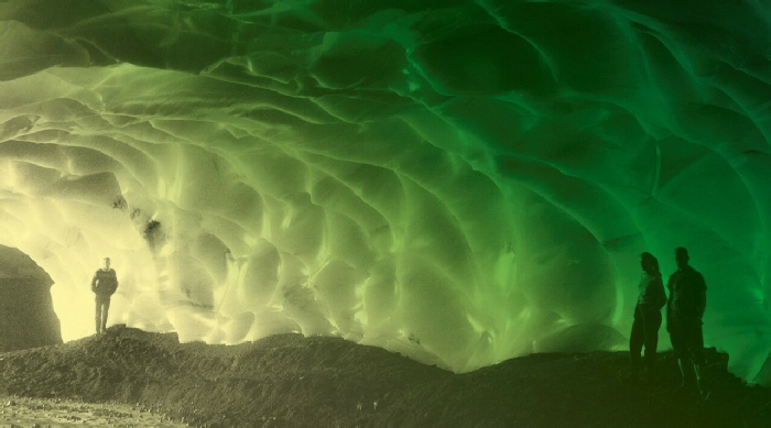 American press photo of an ice cave, 1963. Archive Bogomir Ecker. Photographer unkown.