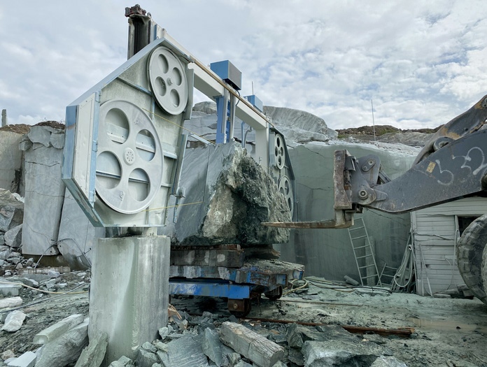 The excavation of Masi Quartzite is a commercial business that transports a unique geological material from one global location to process it in another. 90 to 95 per cent of the broken rock is discarded. The “tenderloin” section is shipped to Germany, Italy and India, where the desired surface character and effect is produced, before the product is distributed to a discerning market.