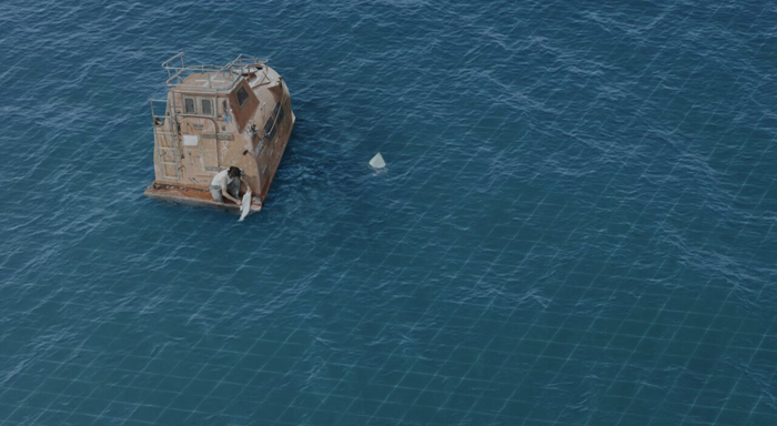 MOON Kyungwon & JEON Joonho, To Build a Fire, 2022, color video with lighting, sound and kinetic blinds connected by DMX program, duration: 15 min.