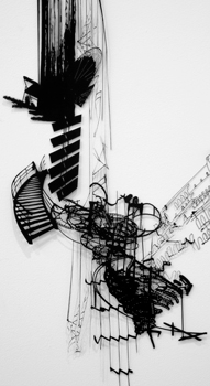 L’exposition se divise en deux parties. Les petites salles du musée présentent de petites oeuvres anciennes de l’artiste sur papier, des graphismes, encres, collages, lithographies et sérigraphies. Une plus vaste salle montre plusieurs oeuvres récentes qui jouent avec les limites entre le dessin et la sculpture. Ces oeuvres de petites dimensions démontent le format traditionnel de la spirale. Partant du mur et amenant le dessin sur le sol, elles explorent l’illusion de l’espace, la perspective et la représentation du paysage.