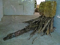 L'artiste a alors étudié les motifs gravés sur les stèles anciennes du musée, tramant ses installations de branchage en relation avec les thématiques des pierres: vêtements, chevelures, éléments végétaux ou animaux... En voici quelques exemples: