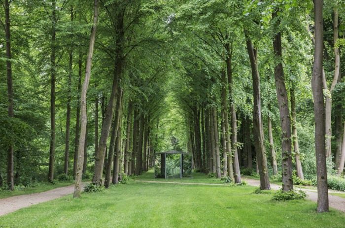 With his figural and architectural sculptures, Thomas Schütte draw attention to inconspicuous urban squares and other forgotten spaces. In the old zoological gardens, he has placed an oxidized steel sculpture weighing several tonnes near two historical building fragments, the howl house and the weir, in th middle of a sandy area surrounded by a low wall.