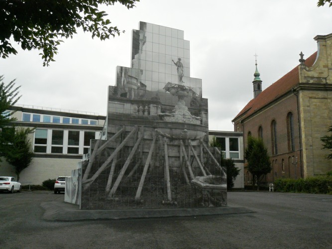 The women artists duo Peles Empire (Katharine Stöver and Barbara Wolff) takes its name from Peles Castle ein Romania. Ths castle’s historicist interior decoration, whiwh reproduces styles of different periods, forms the basis of an artistic approach that makes use of annotation, reproduction and collage. In the direct vicinity of Prinzipalmarkt Square, Peles Empire has erected a walk -
